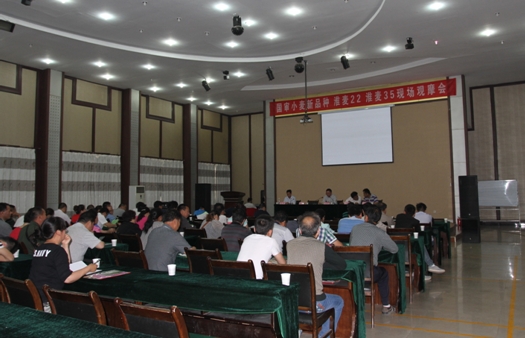 观摩会上陕西EVO视讯官方网站大华种业有限责任公司总经理王金明向参会代表介绍了陕西EVO视讯官方网站大华种业公司的相关情况及今后的发展方向,重点讲解了公司新的自主品种销售策略,并与参会代表展开讨论,会场气氛热烈,将对公司下一步的种子销售起到极大地促进和推动作用。