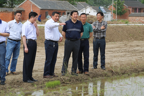 6月6日,苏垦农发股份公司总裁胡兆辉一行到新洋检查指导三夏工作。新洋农场党委书记、场长余新放,分公司总经理陈守军等陪同。