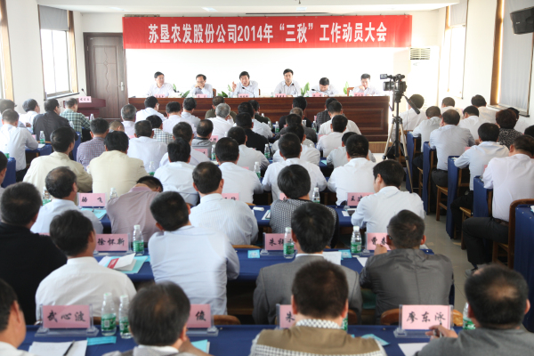 会议根据整体工作安排,围绕今年“三秋”工作特点,从农业生产管理和生产技术的角度,就今年“三秋”工作进行了全面、细致的布置。公司各大片区的代表——黄海、东辛、新曹、三河、南通等5家分公司,围绕如何做好今年“三秋”工作进行了表态发言;苏垦农发股份公司总裁姜建友,分别与各单位总经理签订了2014年“三秋”工作目标任务责任状。会议还下发了《2014年“三秋”工作考核评比办法》、《2014年水稻收购工作意见》和《种植业基地拓展及管理暂行办法》。