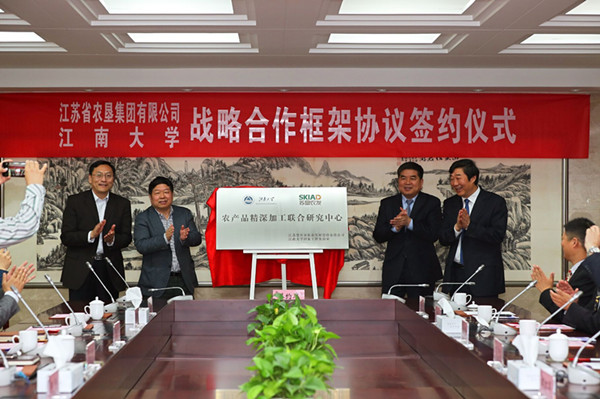 苏垦农发股份公司与江南大学国家工程实验室聚焦国际“大健康、大食品、大产业”前沿技术,合作共建农产品精深加工联合研究中心。江苏EVO视讯官方网站与江南大学有着长期而深厚的合作基础,双方建立全面战略合作关系、共建农产品精深加工联合研究中心,是双方发挥各自优势、推进“产学研用”深度合作的重要举措。研究中心围绕优势互补、强强联合,深入开展协同创新,共同打造全省农产品精深加工、农产品质量安全、农业物联网应用的示范基地和校企紧密合作的新典范。双方以此为起点,将战略合作向更深领域、更高层次推进,深度整合、共享科技资源和产业资源,共同为全省乃至全国农业现代化建设作出更大贡献。