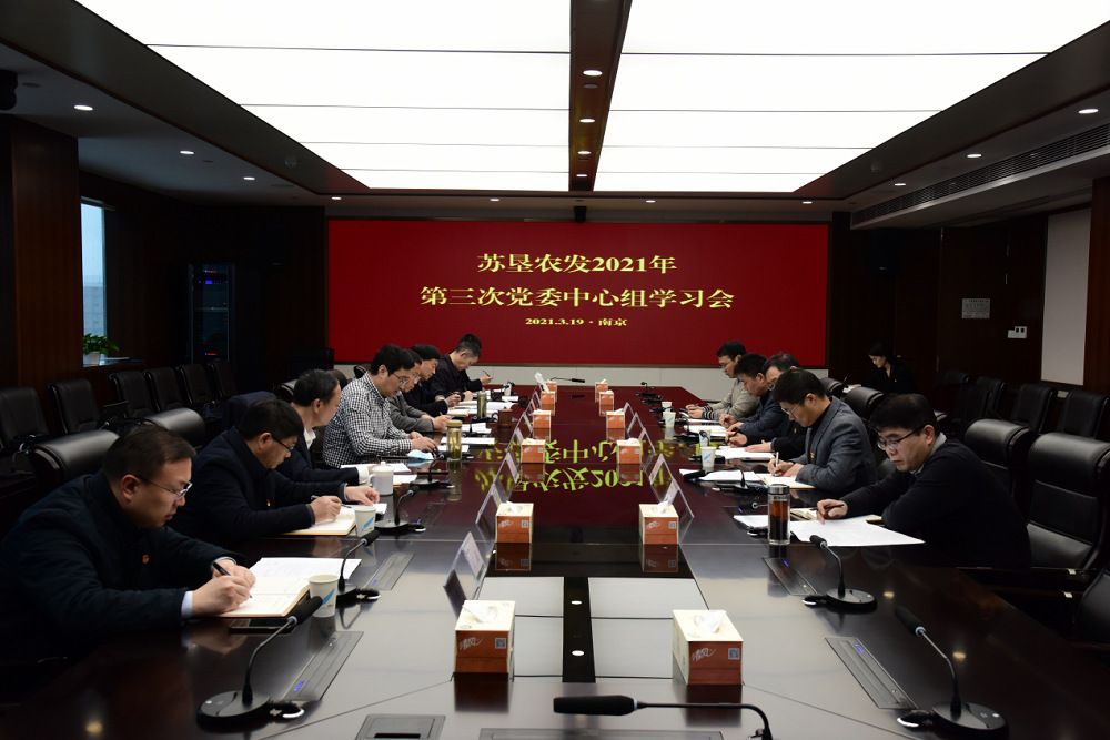王立新指出,公司党委中心组成员、各级党组织和党员干部要对标对表深入学习,把党史学习教育和学习贯彻全国两会精神、中央一号文件精神作为当前和今后一个时期的重大政治任务、政治责任、政治纪律,与习近平总书记对三农工作、江苏工作和国企工作的重要指示要求融会贯通起来,强化守土尽责、争先创优的政治担当。要统筹兼顾真抓实干,认真贯彻落实上级的部署要求。精准捕捉两会释放的信号信息,创新管理体制机制,激发企业内生动力和管理活力。深入实施“万企联万村、共走振兴路”行动,强弱项补短板、重执行抓落实,做好阶段性评估和检查,确保出经验、出典型、出成绩。高标准高质量开展好党史学习教育,细化实化具体化各项任务措施,引导广大党员干部将学习成果转化为推动工作的思路举措和实际行动。要紧密结合公司实际,聚焦点、突重点、挖亮点,切实抓好农业生产和农产品质量安全,坚决打好种业翻身仗,开展好庆祝建党100周年和庆祝公司成立10周年系列活动,深入推进“全国先进基层党组织”创建工作,巩固扩大“全国文明单位”创建成果,凝心聚力、开拓创新、真抓实干,为公司“十四五”开好局、起好步打下坚实基础。