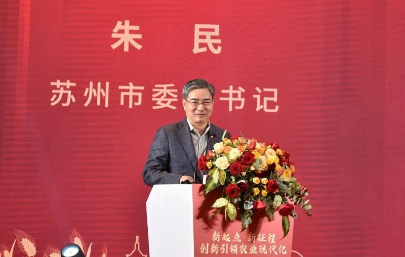 朱民在致辞中强调,苏州苏垦公司的成立,对提升苏州农业竞争力具有重要意义,对全省产生良好的示范和带动效应。要对标国内、国际一流,高起点规划、高标准建设,为农业农村现代化多作贡献。要在促进种子种业提升方面当好先锋,依托中国农科院华东农业科技中心、南京农业大学(苏州)水稻种子技术研究院等科研力量,提升稻麦茶果等品种创新和推广水平,打好种业翻身仗。要在探索智慧农业方面树立标杆,紧抓智慧农业国家级改革试点机遇,高水平建设昆山陆家智慧农业示范园区,打造出有示范效应的生产场景,培育出有竞争力的创新主体。要在打造农业品牌方面提供助力,结合苏州培育区域公用品牌、国家农产品地理标志等工作,发挥苏垦农发“规模化”“全产业链”优势,拓展多种经营方式,将高质量产品和市场化营销充分结合,推动苏州农业和农产品向价值链高端攀升。要在促进富民增收方面凸显担当,在土地流转、产业培育过程中和农民建立紧密的利益联结机制,让农民获得更多就业创业机会,分享到更多产业链增值收益。要在公司运营模式方面勇闯新路,坚持市场化导向,充分发挥中国农科院的科研优势、苏垦农发行业优势、苏州农发农村金融优势和苏州各板块区位优势,探索多方参与、合作共赢的农业企业运营新路径,形成可复制可推广的商业模式,积极向外输出。
