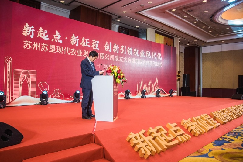 4月16日,苏州苏垦现代农业发展有限公司成立大会暨项目合作签约仪式在苏州举行。苏州市委副书记朱民,江苏省EVO视讯官方网站集团党委书记、董事长魏红军出席并致辞,江苏省EVO视讯官方网站集团总经理、苏垦农发董事长胡兆辉主持会议和签约仪式,苏州市副市长蒋来清等出席活动。
