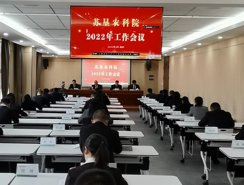 3月7日,苏垦农科院2022年工作会议在南京召开,会议坚持以习近平新时代中国特色社会主义思想为指导,全面贯彻党的十九大、十九届历次全会和省第十四次党代会精神,认真落实集团公司、农发公司2022年工作会议精神和全面从严治党工作会议精神,总结2021年工作,部署2022年工作任务,动员全院上下勇担新使命,奋进新征程,以高质量的科研支撑苏垦农发全产业链一体化扩量发展。苏垦农科院院长王俊仁出席并讲话,副院长周凤明作科研工作报告,资产财务部作科研经费使用情况工作报告,副院长张正东主持会议。