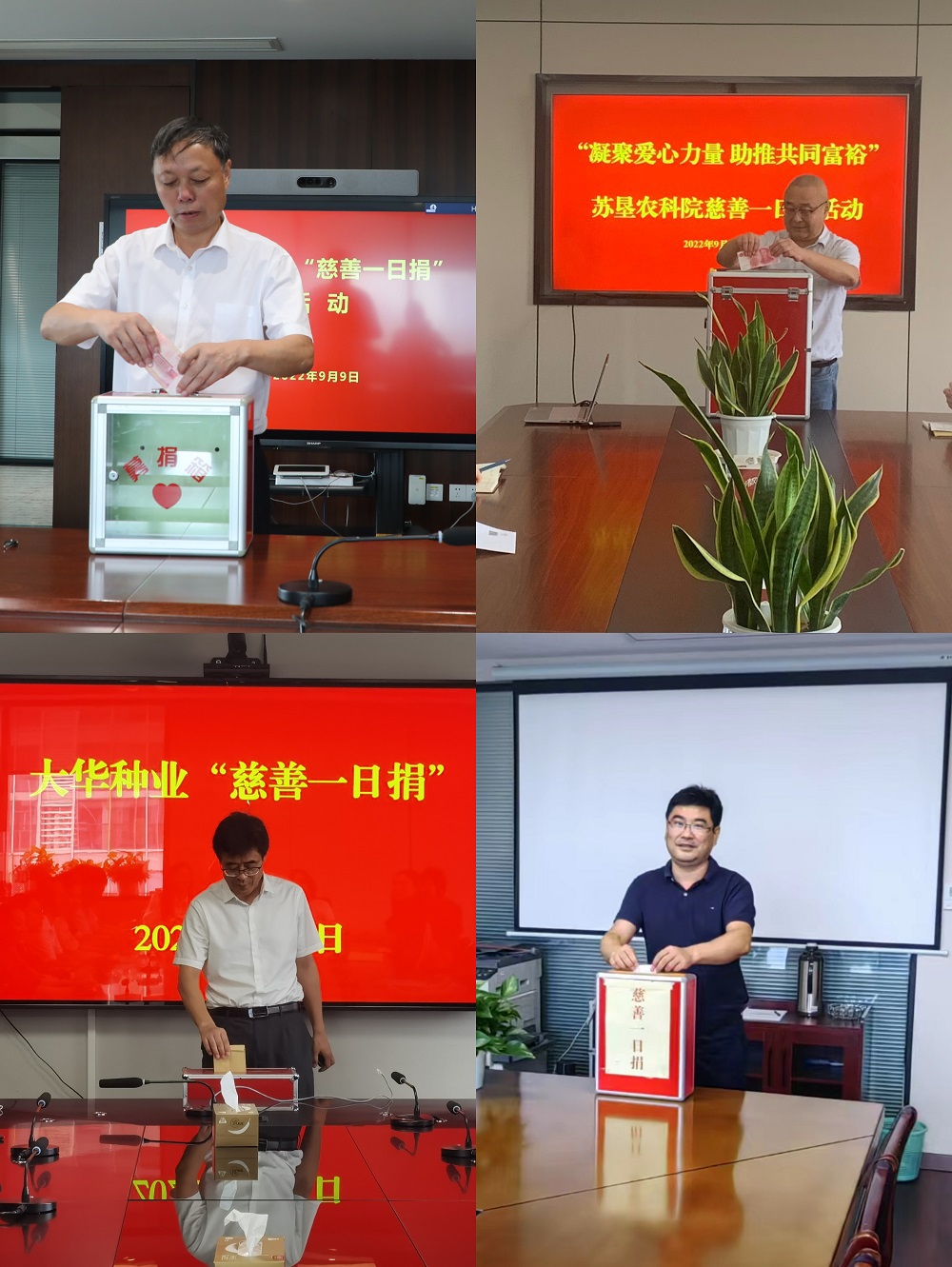 •        为汇集向上向善力量,动员广大干部职工崇德向善、奉献爱心,9月6日-9日,苏垦农发组织总部及驻宁企业开展 2022年“慈善一日捐”活动,267名干部职工参加了此次捐款活动,共募集善款61200元。          各驻宁企业捐款仪式上,领导班子成员率先垂范,带头捐款,干部职工踊跃参加,慷慨解囊,纷纷伸出友爱之手,用实际行动表达对慈善事业的一片热忱、对困难群体的一份关心 。