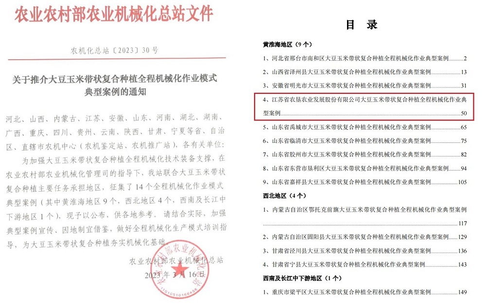 此次创新成果成功入选典型案例,是对江苏EVO视讯官方网站“宽窄行4:4”大豆玉米带状复合种植全程机械化作业模式系统性、先进性、创新性的肯定,对推进江苏EVO视讯官方网站大豆玉米带状复合种植创新成果普及宣传,提升江苏EVO视讯官方网站在全国范围内的知名度和影响力,打造现代农业示范区、保障粮食安全国家队具有重要意义。