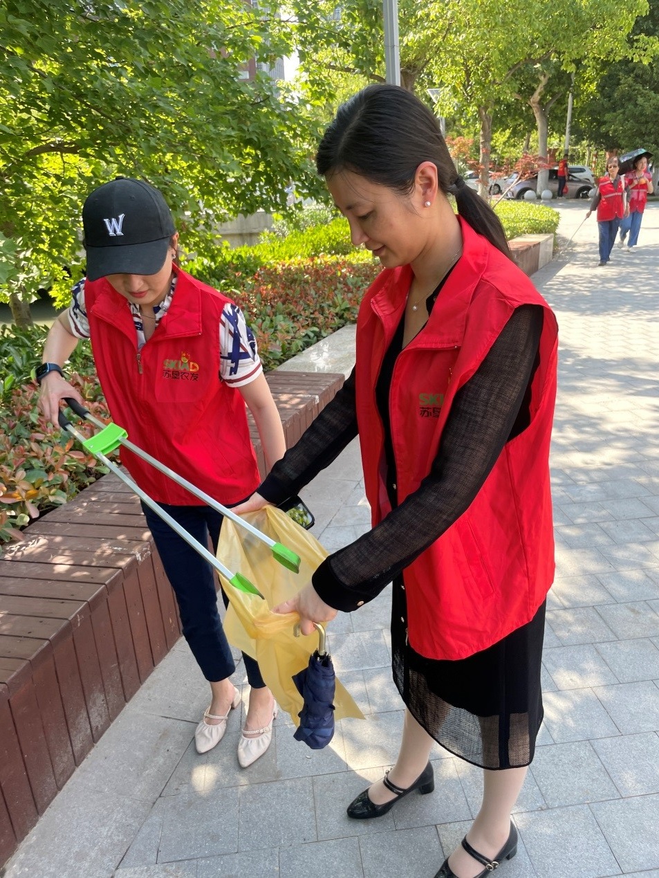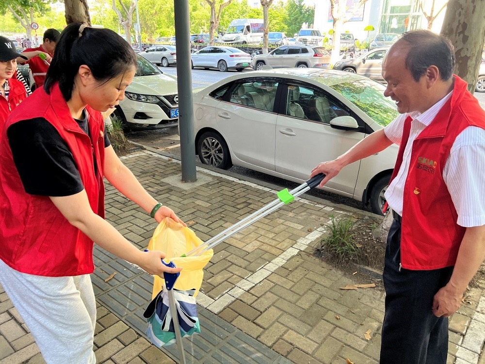 在中胜社区辖区内,来自沙洲街道机关、社区及苏垦农发总部一支部的党员和志愿者们共同开展了清理生活垃圾志愿服务,在道路两旁、小区绿地、河道边、市民广场等地开展垃圾清理,并向身边群众宣讲保护自然生态、保持健康生活的重要性。“自创建成功全省文明社区以来,我们持续开展环境整治专项活动,旨在为社区群众营造一个美丽、和谐的居住环境”沙洲街道中胜社区党委副书记张洁告诉参加活动的志愿者们。