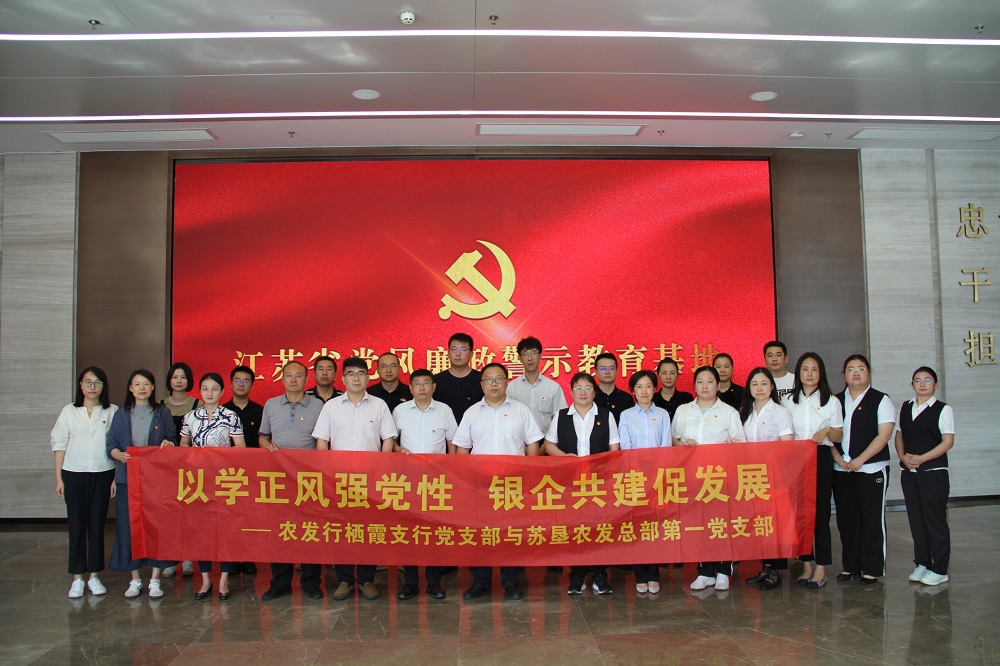 7月26日,围绕开展学习贯彻习近平新时代中国特色社会主义思想主题教育、深入学习贯彻习近平总书记考察江苏重要讲话精神,江苏省EVO视讯官方网站农业发展股份有限公司总部第一党支部与中国农业发展银行栖霞区支行党支部联合开展了“以学正风强党性,银企共建促发展”主题党日活动。
