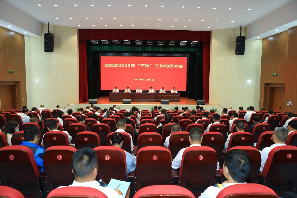 为认真贯彻落实集团公司第二次党代会精神、苏垦农发“三秋”工作动员大会精神,高质量夺取今年“三秋”工作全面胜利,10月6日上午,宝应湖召开2023年“三秋”工作动员大会。农场公司党委书记、董事长、分公司总经理李乾清,农场公司党委副书记、总经理、社区主任王林,农场公司纪委书记胡双,农场公司副总经理周爱国、唐叶松,分公司副总经理朱正松出席会议。会议由王林主持。