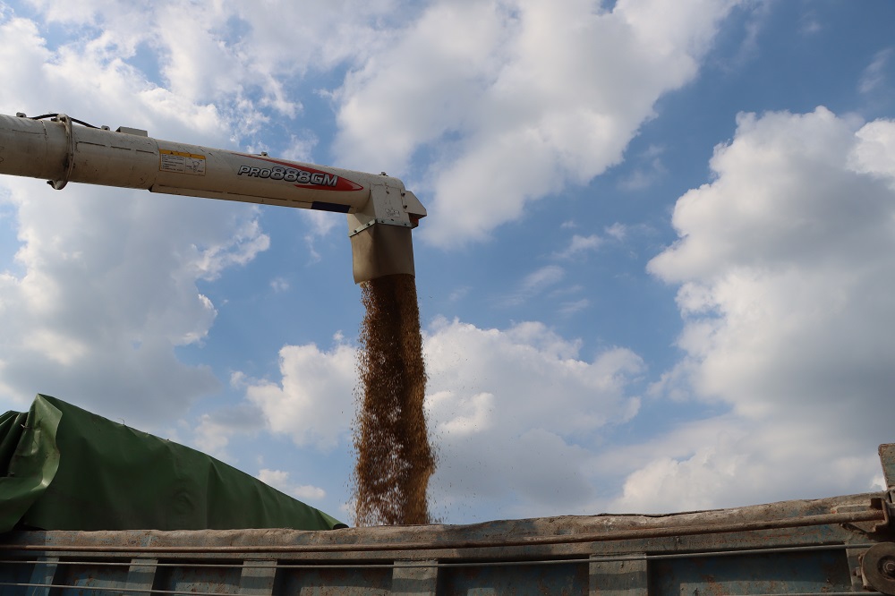 一粒粒饱满的稻谷被收割机收入“囊”中,随后又被装到停在田埂边的运粮车上,一车车满载粮食的卡车开往就近的农事服务中心排队卸粮、烘干、装仓。