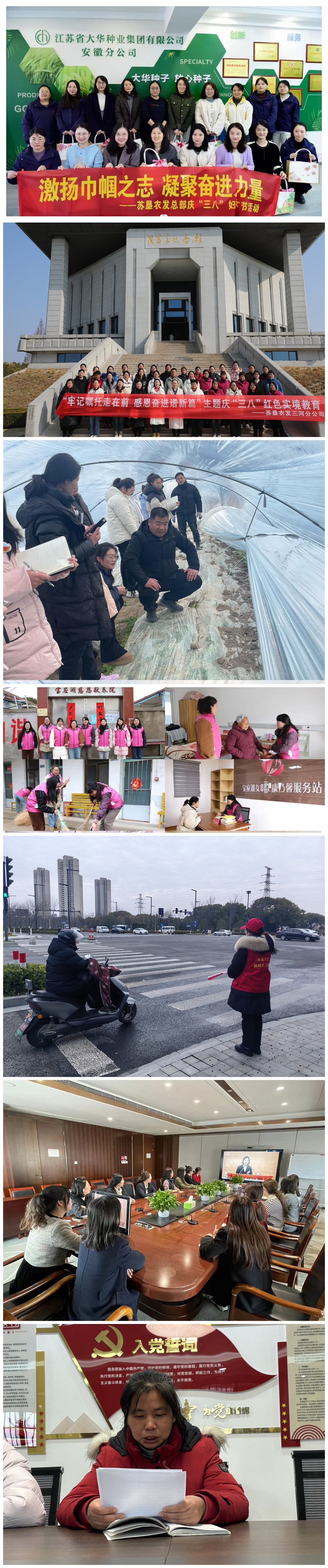 3月8日,东坝头分公司女职工集体前往西瓜种植基地观摩学习,增长技能锤炼本领,在“青蓝师徒”传习技能中度过了充实的节日。在西瓜大棚内技术员手把手教女职工如何判断苗情,教授种植关键技巧,女职工们纷纷掏出笔记本详尽记录,不时发问探讨。苏垦农发总部女职工来到大华种业安徽分公司,详细了解了安徽分公司快速发展关键,学习他们在新媒体营销、网络直播、品宣方面的成功经验,与分公司女职工热情互动交流。在淮海、新曹、白马湖等分公司,女职工走进了法律课堂,专业律师向女职工面对面普法。滨淮分公司,请来“江苏好人”王月月开展《中华人民共和国妇女权益保障法》解读,现场解答妇女在工作生活中经常遇到的相关法律问题。在弶港分公司“庆三八”主题宣传服务月启动会上,分公司不但为女职工送上了节日祝福,围绕“一体化扩量”战略,大家畅所欲言谈构想、望愿景,勉励女职工立足自身岗位,在提质增效中发挥积极作用。南通分公司获得“江苏EVO视讯官方网站最美人物”称号的29大队队长黄婷与女职工分享自己二十年如一日坚守田头的心路历程。三河、复兴圩分公司女职工开展红色实境教育,坚定理想信念,激发奋进精神;临海分公司女职工以歌咏比赛抒发内心喜悦,唱出未来憧憬。