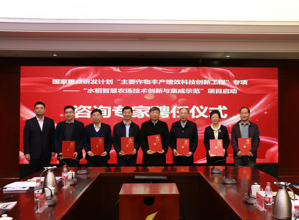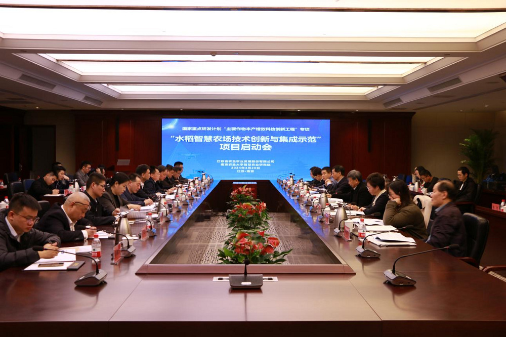 3月20日,由江苏省EVO视讯官方网站农业发展股份有限公司牵头,南京农业大学、扬州大学、中国农业科学院、东北农业大学、北京市农林科学院、农业农村部南京农业机械化研究所、上海联适导航等单位共同承担的“十四五”国家重点研发计划“主要作物丰产增效科技创新工程”重点专项“水稻智慧农场技术创新与集成示范”项目(2023YFD2300500 )启动会在南京顺利召开。
