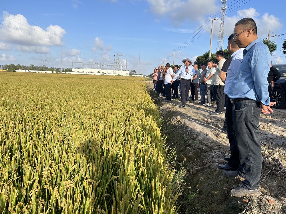 在逐一探访各个生产区的过程中,各单位不仅深入交流了对农业生产的深刻见解与独特视角,还积极分享了各自有望实现高产的作物品种信息。这一系列分享与交流,不仅加强了各单位之间的合作与共赢,更充分展现了水稻生产领域的巨大潜力与广阔发展前景。特别是在最后参观临海分公司第四生产区的高产品种时,其卓越的产量与品质赢得了广泛的赞誉与高度关注。观摩过程中,大家或驻足观察,或低头沉思,或热烈讨论,共同探寻水稻高产的奥秘与有效途径。这种跨区域的深入探讨与交流,无疑为淮海农业生产的发展注入了新的活力与动力。