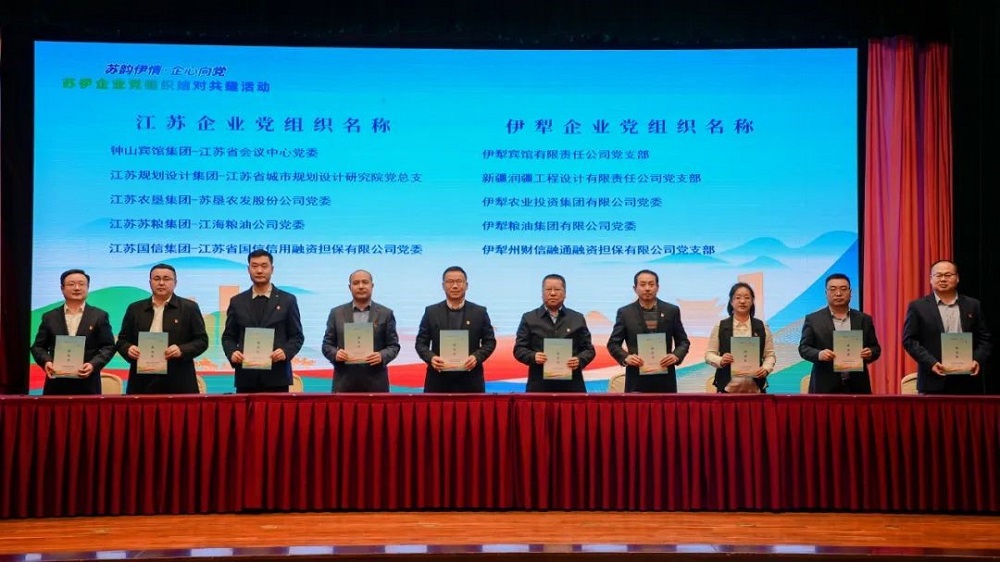 12月3日,“苏韵伊情·企心向党”苏伊企业党组织结对共建活动在江苏南京启动,江苏、伊犁两地78家企业党组织一对一或多对一签约结成40对共建单位,苏垦农发党委作为江苏EVO视讯官方网站集团代表参加了本次活动,与伊犁农业投资集团党委签订结对共建协议书。